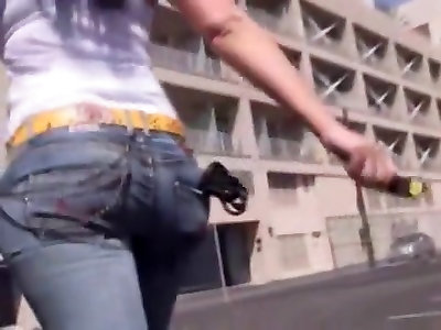 Marvelous bum ginormous fapping Milf in leather microskirt outdoors