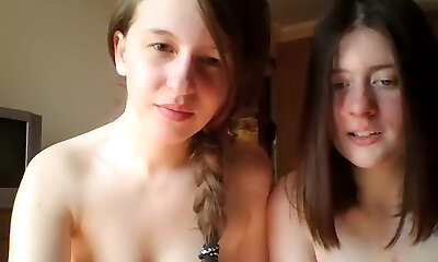 Two naive amateurs take off their clothes showing small perky titties