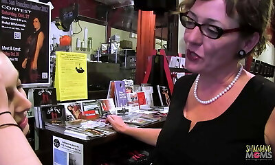 A tiny blonde teen lesbian with pierced tongue gives a decent licking to her mature girlfriend with glasses