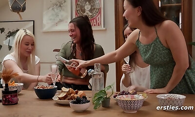 A relaxing evening fastly turns into an amateur lesbian group romp