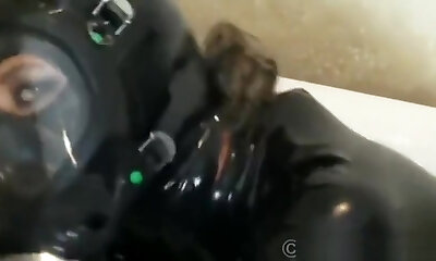 Latex lesbian strap on