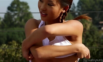 Two Lil Girls Have Their First Lesbian Outdoor Sex on College Journey