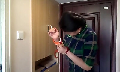Hairy Pussy Brunette Girl Fucked with a Cord