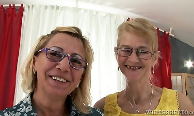 Blonde grannies Milli and Beata finger and plaything each other's shaved fuckboxes